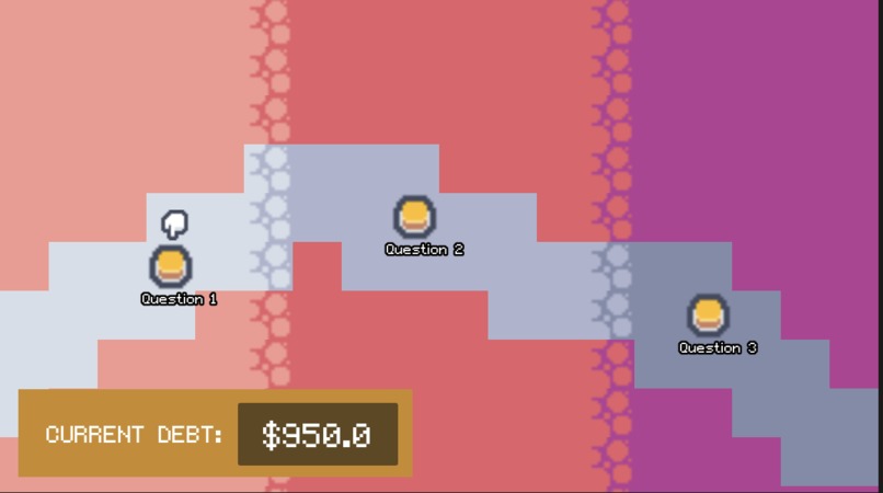 Our inspiration came from personal experience navigating student debt—feeling confused, unsure, and overwhelmed by financial decisions we weren't prepared to make. None of us had in-depth financial literacy backgrounds, but we had a strong desire to learn. As we researched the student debt crisis and its history, we realized we weren't alone: financial literacy education is often disengaging, formal, and confusing, leaving many students without the tools they need. We wanted to change that. Our goal was to create a fun, engaging experience that reaches students who can relate to our character's journey and learn to make responsible financial decisions in a low-stakes environment. The student debt experience is universal, and we wanted to empower our peers with the skills and knowledge to improve their financial outcomes. We also challenged ourselves by choosing a completely new game engine and scripting language—learning alongside our players.
